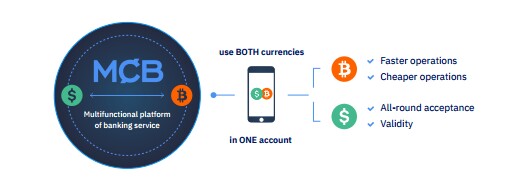 MyCryptoBank offers its clients a multifunctional platform of banking service, which represents a hybrid system combining digital and traditional currencies. The use of digital currencies makes operations faster and cheaper, while traditional currencies guarantee practically all-round acceptance and validity. One account combination allows clients simultaneously using advantages of both types of currencies.
