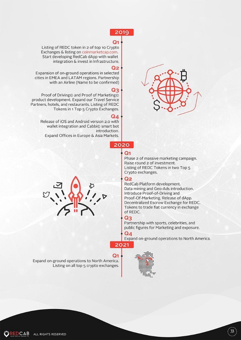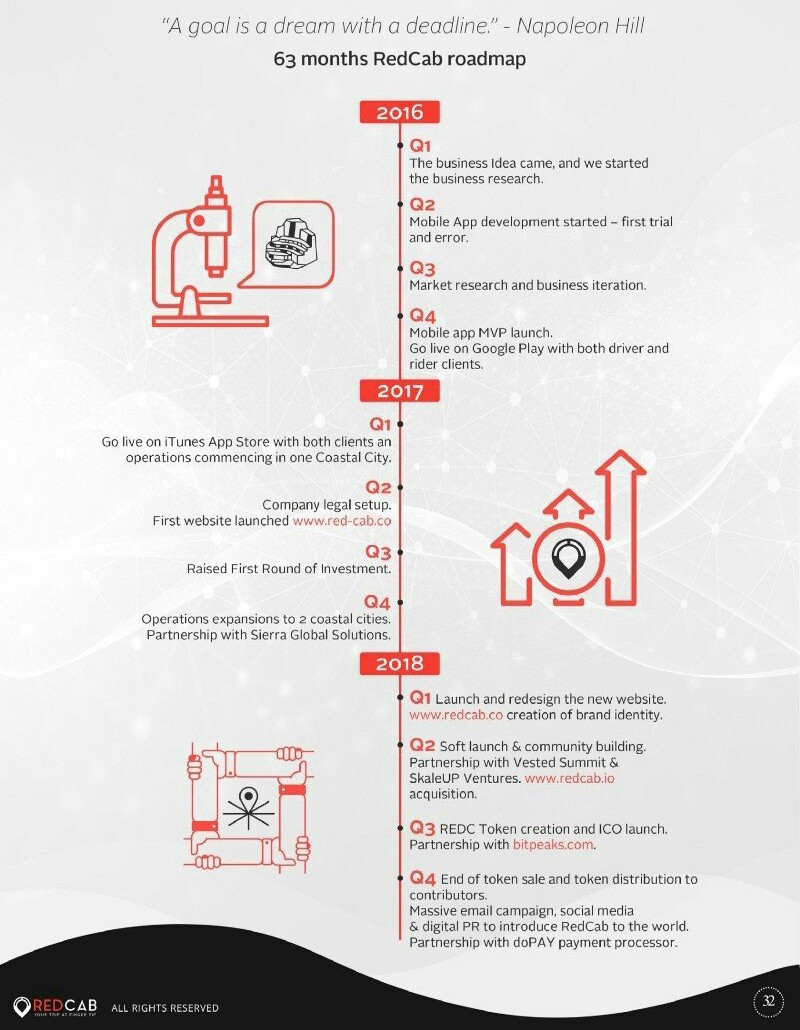 The goal of the RedCab “Token Sale” is to convert our business model into a decentralized ecosystem that allows access to global markets with a transparent approach, reduce expenses of transportation for end users saving more than $60B made through middlemen businesses, and to develop our infrastructure to address the growing international demand on transportation services around the world through developing a powerful scalable tool.