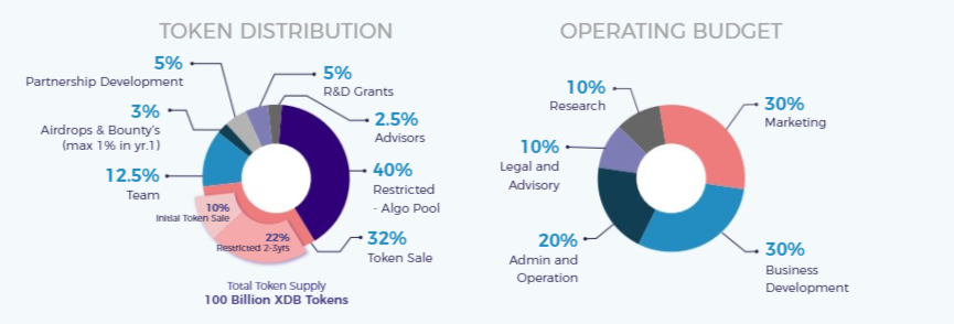 The token sale was allocated 32% of token supply which is 32,000,000,000 XDB. The developers were calculated all of this allocation as a professional.