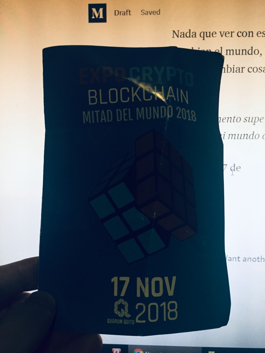 Blockchain mitad del mundo 2018 (Aún conservo el flyer porqué es mi inspiración para seguir aprendiendo)