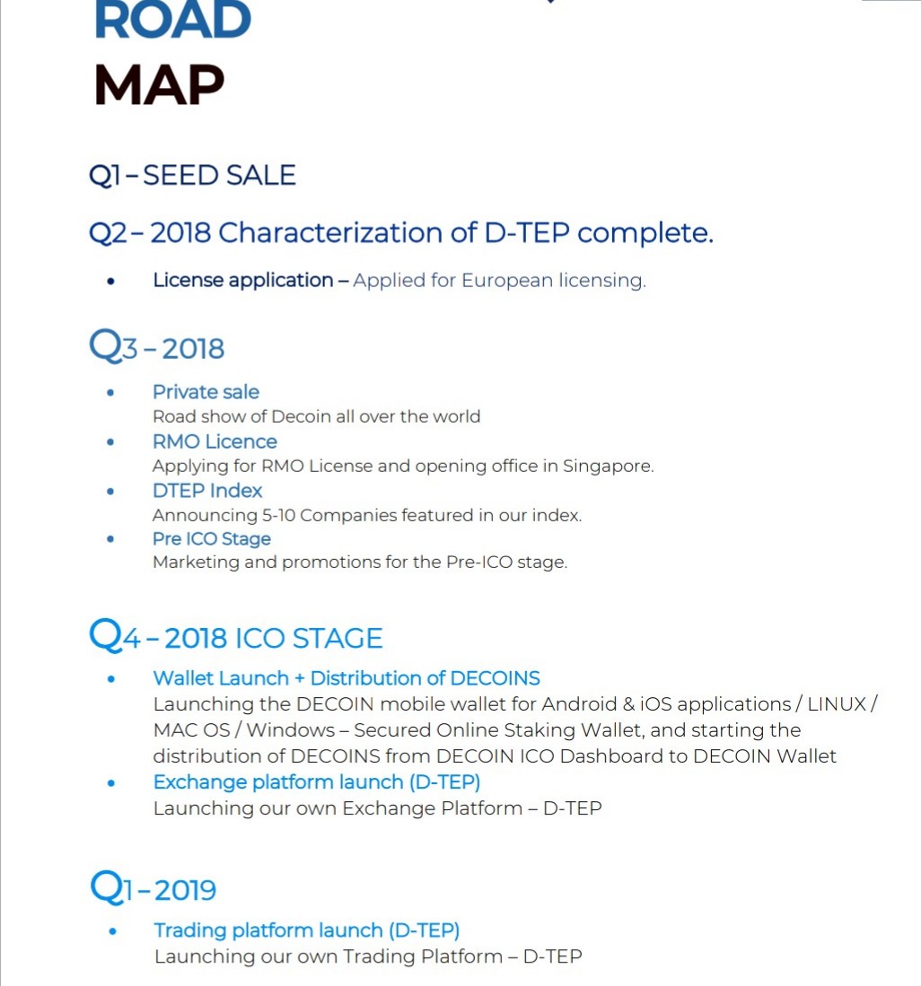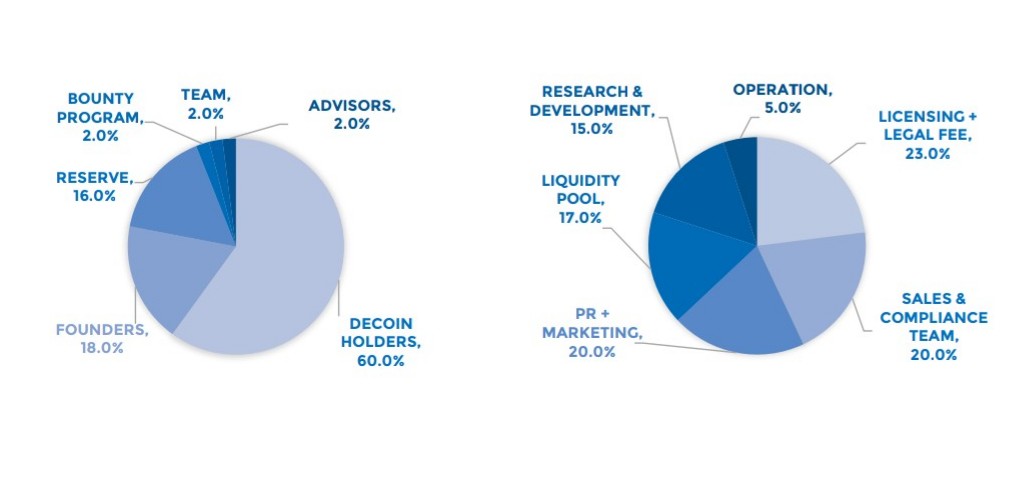The Decoin ecosystem is mechanized by an Exchange and Trading Platform called D-TEP, which redistribute revenues made by the platform to all the DECOIN token holders. DECOIN acts as a revenue sharing exchange coin. This essentially means that investors of the DECOIN is assured to acquire some kind of revenue, equivalent to every other token holder. DECOINs aim is to build a world outstanding customer care centres globally to promote the acceptance of cryptocurrency and blockchain technologies, quick-action easy & simple multicurrency exchange and trading platform, that shares the exchange profits with all of its coin holders.