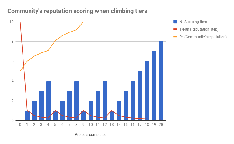 So, if a community pays perfectly well 5 Tier1 projects, should they be perceived as “not trustworthy”? We think not, so a more nuanced system should take in account the previous experience in that tier when presenting the community to the investors.