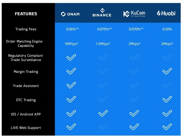 Speed, with ONAM can be made between 10 million transactions per minute, unlike other exchanges that make between one to two million transactions per minute