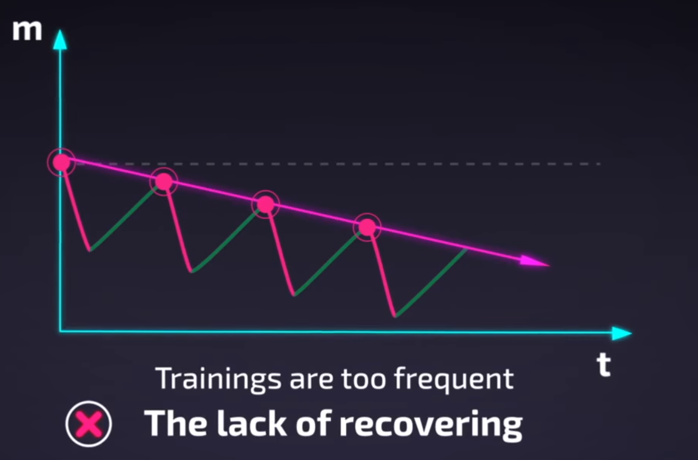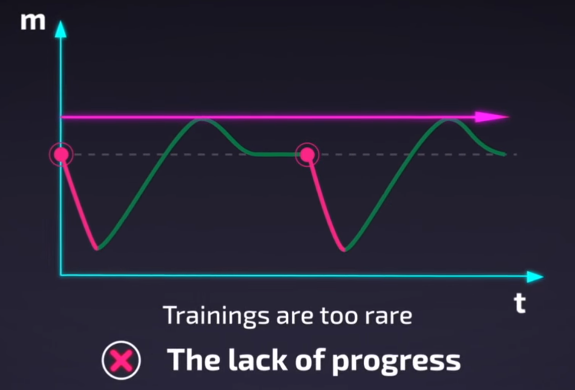 If your rest too much in Training. The period of Super Compensation is skipped it’s usually causes a lack of progress in training.