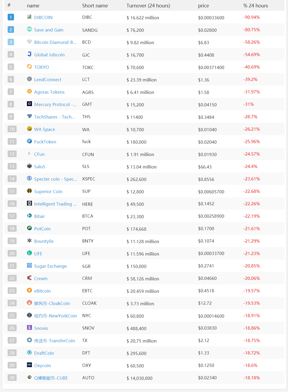 [Daily Update]blockchain currencies rankings in the last 24 hrs(2018-03-04 UTC)harryhan1989 (25)in #blockchain • 8 years ago Generate Time: 2018-03-04 17:00:00(UTC) Currency Unit: dollars($) Rising rankings in the last 24 hrs Decline ranking in the last 24 hrs #leaderboards