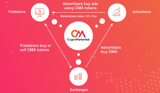 Crypto Market Ads (CMA) is a new marketplace which solves all problems related to crypto advertising and marketing on the blockchain by connecting both, publishers and advertisers under a single platform. The initial currency in exchange will be CMA tokens. This help either parties as the publisher will make and hold a profile with all the credentials along with the mentioned price for the service, on this platform. Due to free market conditions, publishers will have a healthy competition which will influence them to keep prices as low and competitive as possible to attract advertisers. Publishers will also get higher demands from advertisers since they are more affordable and quickly available through the CMA marketplace for new advertising or marketing campaigns.