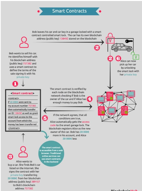 smart contracts are product of the blockchain technology, they are computerized transaction protocols that executes the terms/conditions of a contract. The protocol implements the conditions of the negotiation prior to the finalization of the contract.The protocol eliminates the need for third-party and yet still executes credible transactions. Transactions executed with smart contracts are easily accessible, traceable, alteration free and irreversible. The aim of smart contracts is to facilitate contractual agreements with no formality and large cost associated with the traditional system.