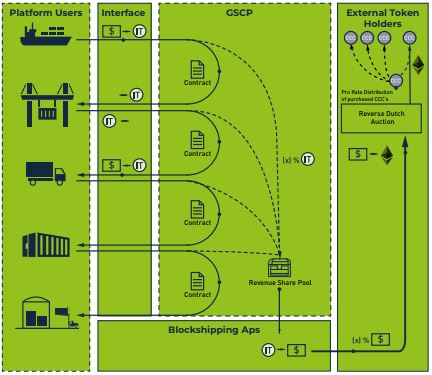 - Container Platform Token (CPT) / The internal utility token; for those who use the Blockshipping services (will be fixed at $1/token) and,
