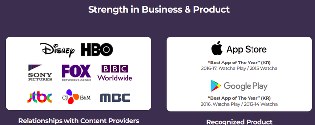 Among the added advantage of the contents protocol platform is the influence of it's parent platform which is watcha. Watcha is a content platform which has been operating for quite some years In Japan and korea. Watcha has been awarded as the best app from the App Store as the 2016-17 “Best App of the Year” (KR), Watcha Play / 2015, Watcha. And also received an award from the Play Store as the “Best App of the Year” (KR) 2016, Watcha Play / 2013-14, Watcha. The contents protocol platform is also supported with a lot of giant enterprise from both the content industry and cryptocurrency space.
