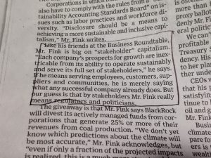 The Theme Word was present, even if a bit hidden on the editorial page on the topic of Larry Fink, the CEO of Black Rock which has more than $7 trillion in investor money under management.