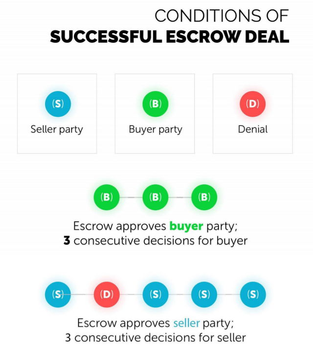 It directs exchange clashes through the assistance of a decentralized, rating driven escrow benefit.