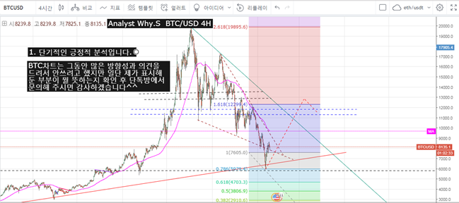 * 1. 단기적인 긍정적 분석 : BTC 차트는 그동안 많은 방향성은 기존 의견을 유지하며 일단 표시한 부분은 유의미함.
