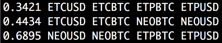 it means that if you buy NEO with USD and sell it back to BTC and buy ETP with BTC and sell it back to USD, you have a 0.6895% profit, say if you start with $50 you’ll get $50.34475 ideally(without the fees in Bitfinex, buy and sell all at correct pirce), after doing four steps above.