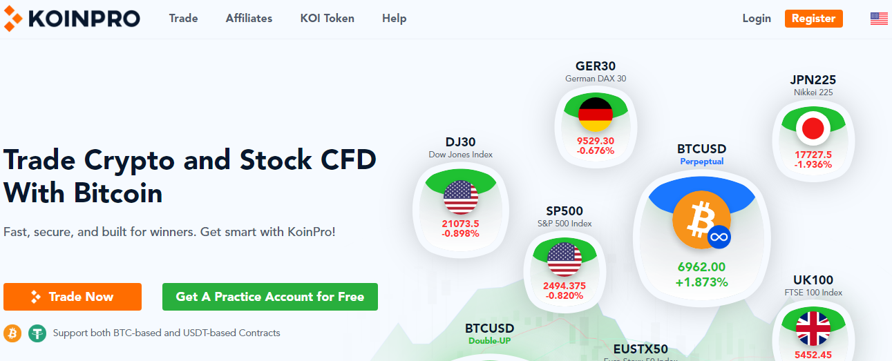 - На KoinPro вы можете обменивать Биткойн на Индекс Доу Джонса, Немецкий DAX 30, Японский Nikkei 225, Британский индекс FTSE 100, Австралийский ASX 200, Индекс европейской биржи, и американские индексы Nasdaq и S&P 500. Помимо этого доступна также возможность торговать в паре с золотом, нефтью и долларом США в двух вариациях контракта.