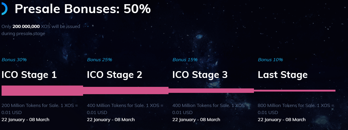 The holders of XOS will be able to use different services from the operating system. They can also enjoy the testing modules of the system. The project Beta version would be launched to token holders as soon as they get a successful ICO. XOS token will be launched with 4 billion of max supply. Using the token the holders will be able to access their premium services too.