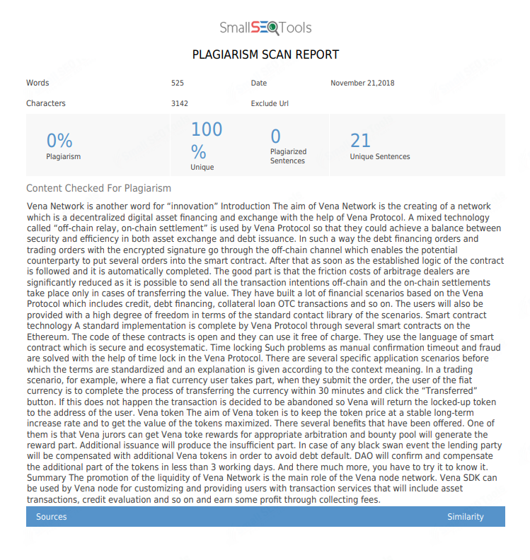 The aim of Vena token is to keep the token price at a stable long-term increase rate and to get the value of the tokens maximized. There several benefits that have been offered. One of them is that Vena jurors can get Vena toke rewards for appropriate arbitration and bounty pool will generate the reward part. Additional issuance will produce the insufficient part.