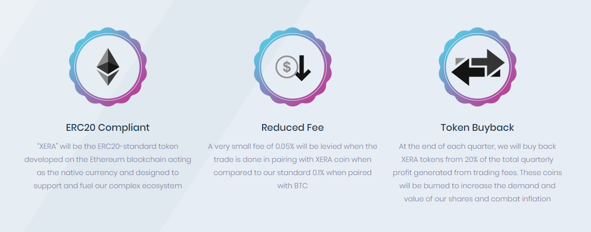 The traders are able to reduce the fees with the help of the XERA token and its buyback monetary policy. They will use the token as an incentive for the customers of the platform which will in turn include a number of benefits.