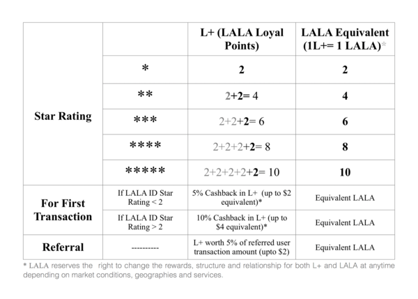 LALA Wallet and on each successful referral, all in L+ (LALA Loyalty points) which is directly equivalent to LALA Token, 1:1.