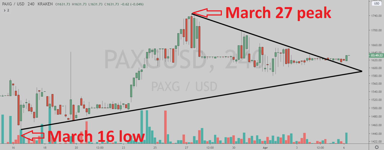 PAX Gold (Kraken: PAXGUSD) four-hour chart by Tradingview.