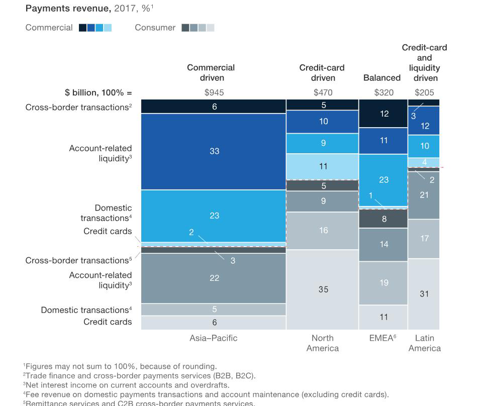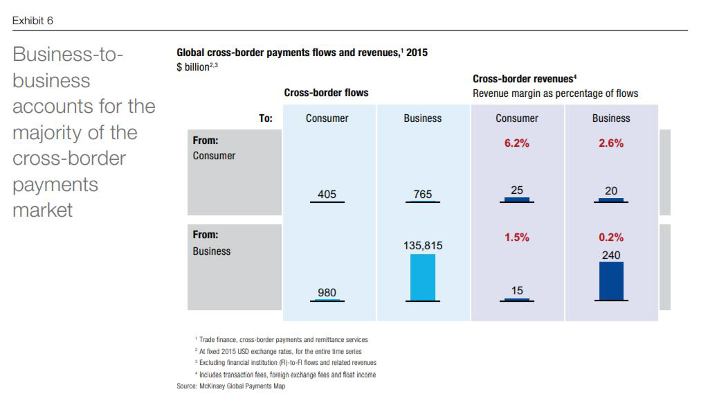 10月,麦肯锡发布2018全球支付报告,报告显示,2017年全球支付总收入达到1.9万亿美元,其中跨境支付为2063亿美元。