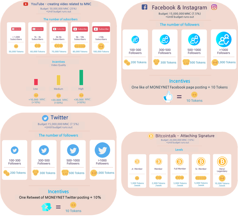 MONEYNET is looking for blockchain and crypto enthusiasts for the following Bounty Programs: YouTube Campaign, Signature (Bitcointalk) Campaign. Twitter Campaign, Facebook & Instagram Campaign and Naver Blog Campaign (Korean online platform).
