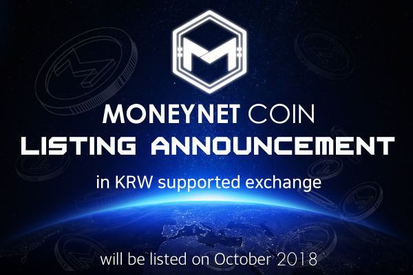 We are happy to announce that MONEYNET will be listed on a South Korean cryptocurrency exchange by the end of October, 2018. Although we are unable to share further details at this moment, we’ll promise to keep you updated. Please stay tuned for the latest news and information on the listing!