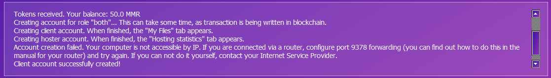 My hoster account creation failed because of some connection settings. Looks like we have to open up port 9378 although I'm not sure why it wasn't automated during installation. But anyways, let's take a look at client account.