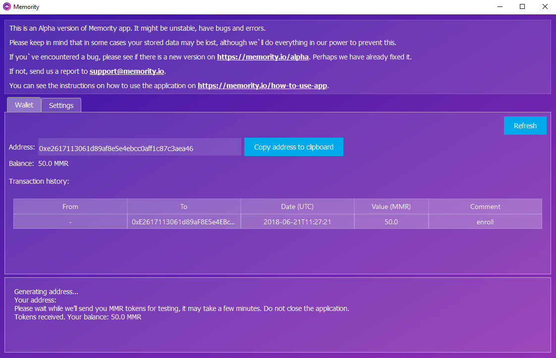 Then, click Submit and wait for MMR tokens to be sent to your wallet for testing. Depending on the network, it may take a few minutes. Do not close the application.Your balance should be updated to 50.0 MMR