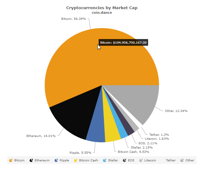 Below is a pie chart describing the capitalization of the cryptocurrency market, with the separation of the largest digital currencies