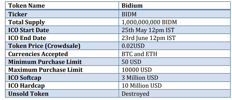 BIDM ICO Start Date: 25th May 12pm IST