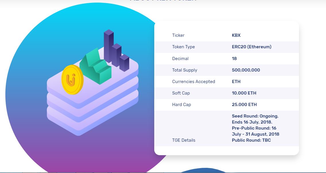 The total supply of 500,000,000 KuBitcoin (KBX) tokens which are based on the ethereum ERC-20 standard. The reasons for choosing ERC-20 tokens are the present familiarity of the market with this standard plus the stability of Ethereum Blockchain.