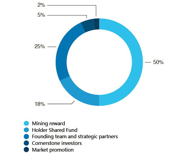 - 18% for holders shared fund; which will be frozen in advance and then released according to the proportion of HIBT excavated from the mined tokens. It was designed to encourage HIBT holders.