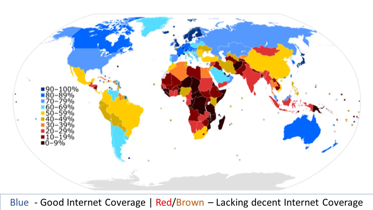 The Internet coverage across the globe is uneven with certain regions having a strong access simply because of good infrastructure in comparison with other regions. Take a look at a global pictorial schema of the coverage.