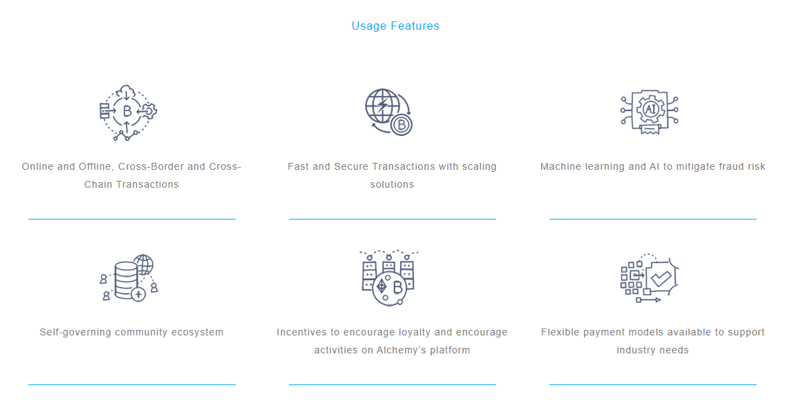 Alchemy Global Payment Solutions Limited компаниясы экстремалды серіктестіктерге орталықсыздандыру, ақылды келісімшарттар және жылдам төлемдер негізінде жылдам, қауіпсіз, ыңғайлы, икемді және жылдам дамып келе жатқан ғаламдық төлемдік шешімдерге көмектесу үшін ашық бастапқы хаттамаларды және өнімді жылдам әзірлеу платформаларын ұсыну болып табылады. blockchain технологиясындағы консенсус тетіктері.