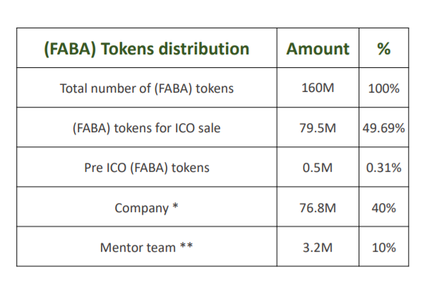 Total Supply: 160,000,000 FABA Token