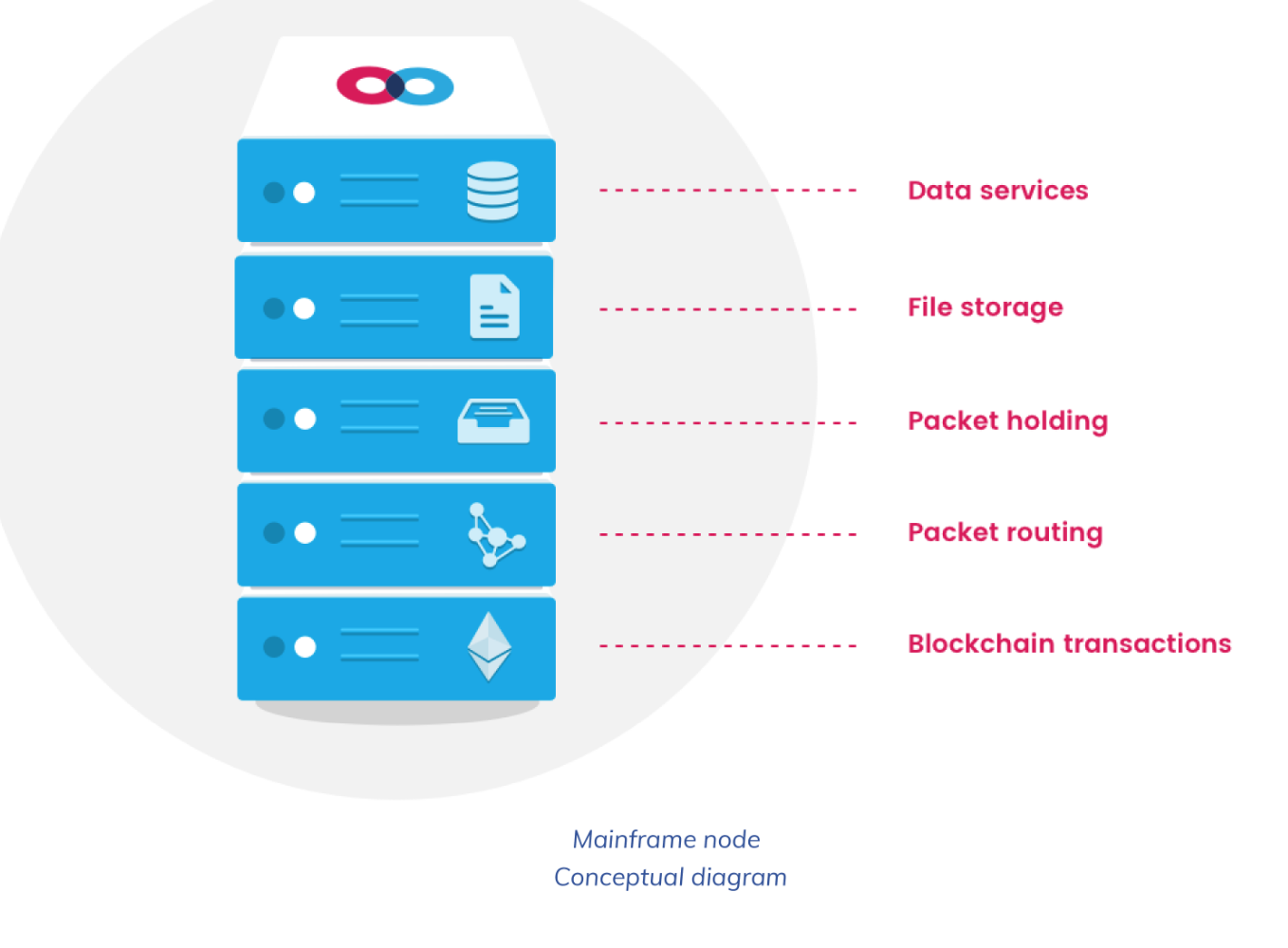 - Mainframe provides other incentivised services such as file storage, data services, packet routing , and delivery