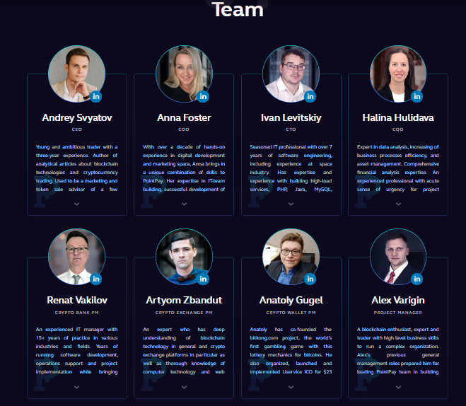 PointPay is a project of expert investors, finance experts, blockchain experts and data analysts. team members are listed below.