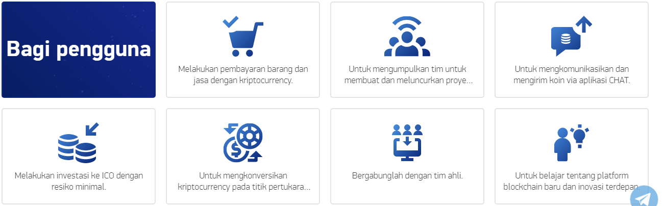 jasa dan hiburan untuk mata uang kripto.Cari tim untuk melaksanakan dan meluncurkan proyek Anda.Berkomunikasi dengan penggemar kripto lainnya melalui chat internal dan bahkan mentransfer koin ke sana.Satu pertukaran mata uang dengan nilai tukar lain dengan nilai tertinggi, yang juga bisa Anda evaluasi.Memiliki akses terhadap informasi tentang kemunculan dan pengembangan platform baru dan peluang blockchain di seluruh dunia.Berinvestasi di ICO dengan risiko minimal, berdasarkan rating pengguna. Setiap startup akan memiliki reputasi dan umpan balik dari pengguna penggemar kripto yang sama dengan Anda, yang akan membantu meningkatkan atau menurunkan kredibilitas proyek tertentu.