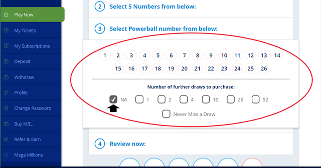 You can see your chosen number in review and can also add Power Play to double the number of bets we can get outside of the jackpot.
