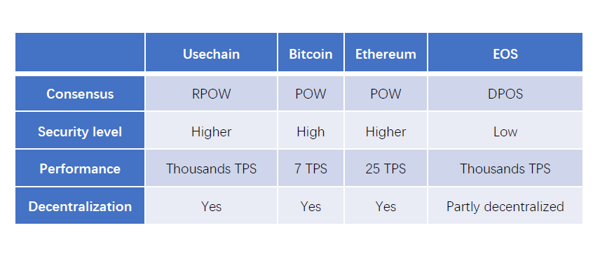 Usechain combines the various technical and competitive advantages of existing blockchain models and offers one of the most executive consensus mechanisms called Randomized-Proof-Of-Work (RPOW), based on identity mapping to realize new opportunities of blockchain.