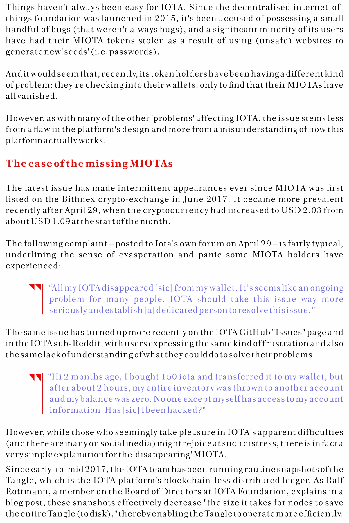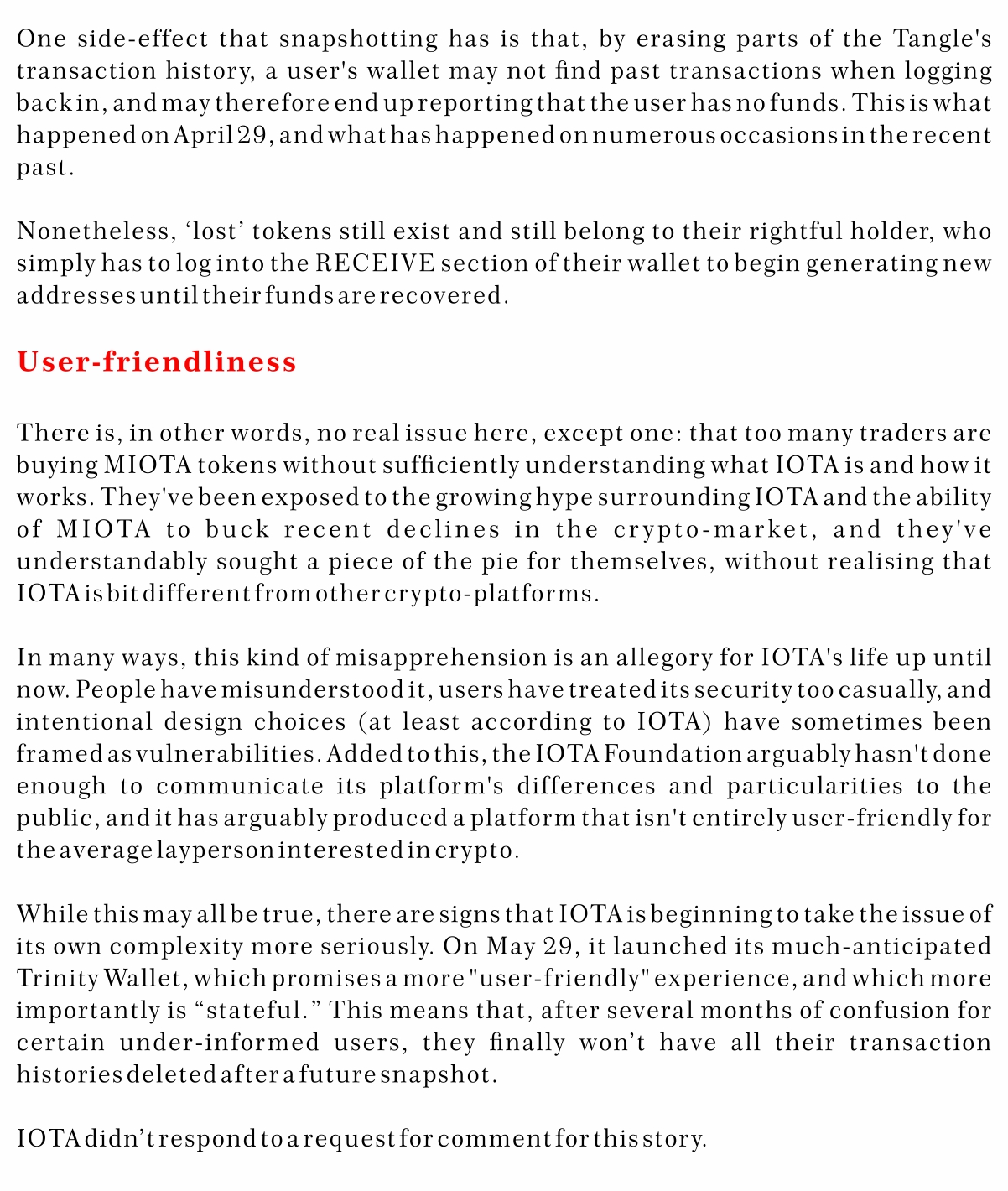 Will IOTA Users Stop 'Losing' Their Coins Now?rogg (25)in #blockchain • 8 years ago ‘Lost’ tokens still exist and still belong to their rightful holder. Confusion should end with the launch of Trinity Wallet. #crypto #cryptocurrency #technology #gravityprotocol