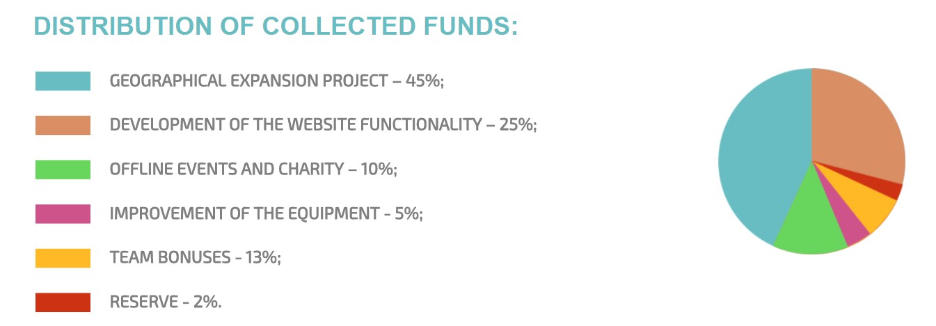 Every 3 months, ICO participants will receive a report on the work done (services implementation, geographical expansion, number of visitors and other progress of the company), on the basis of which the team reward will be received or not. Each investor, along with a report on the work done, will get a feedback form where he can vote, as well as leave a comment.