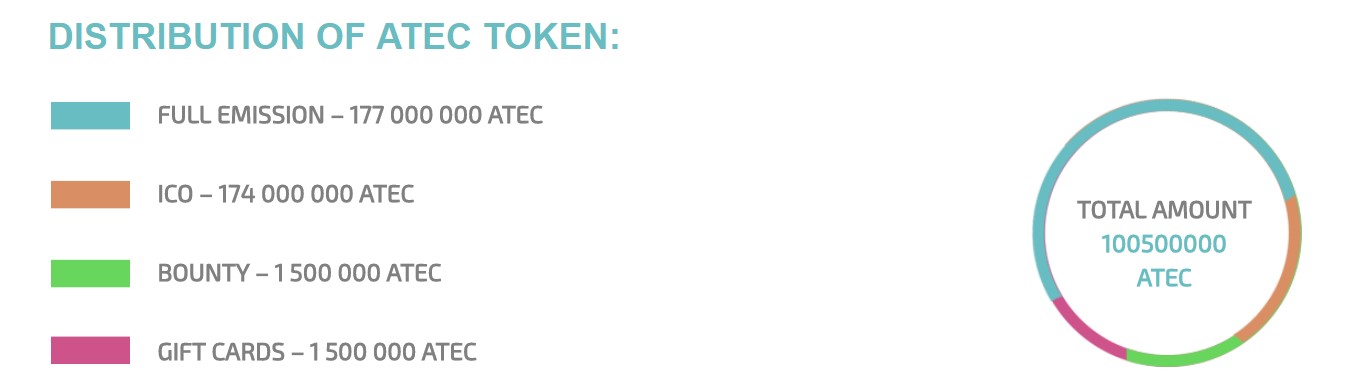 We present an ATEC cryptographic token based on the Ethereum platform. The ATEC token has a limited emission. This is a utility token, it can be used for settlements only within the project, but it can be moved within the website. (We also do not prohibit ICO participants from moving ATEC tokens between wallets). The token cannot be used outside the website. All unsold tokens will be destroyed. The token can only be used once.