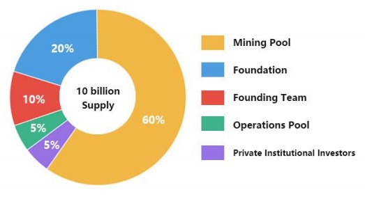 As CBNT is a proof of platform ecosystem, CBNT token holders can enjoy rights on the platform, like revenue sharing, supervision, voting etc. The total supply of CBNT is 10 billion, and it will never be overissued. There are two ways to obtain CBNT: one is mining, and the other is to trade from the exchange. The distribution mechanism of the tokens are as follows: