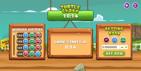 Turtle Chase is a game where three turtles choose one turtle to bet in an exciting running race. Users make a bet by choosing between the red, green, and blue turtles within the preparation time. A game in which a user's choice of turtle wins a race is paid 2.97 times of betting amount.