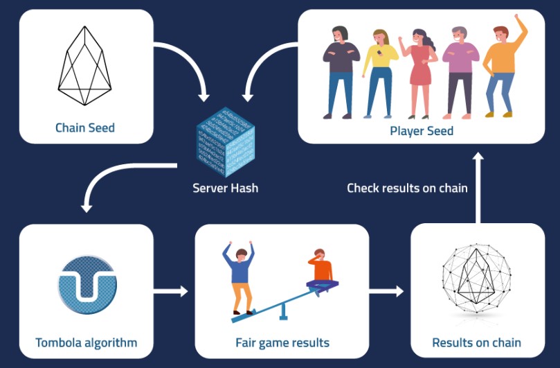 The Tombola game is going to be fair because it would actually have a value with seeds which in turn will be generated at random in the EOS chain along with the seeds in the players. It is the Tombola algorithm, which will be used by the hash value so as to come up with the game results. Also, the result is going to be stored in the blockchain. So, the whole process behind the lottery and gambling is going to be very well established, technically sound, safe and secure.