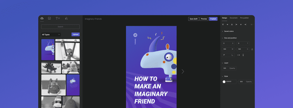 And since we’d like you to start with rich, high-quality media when designing a story, we’ve collaborated with Unsplash to make their extensive high-quality photo library just a click away, as well as Coverr, giving you high-quality, free stock video right from the editor.