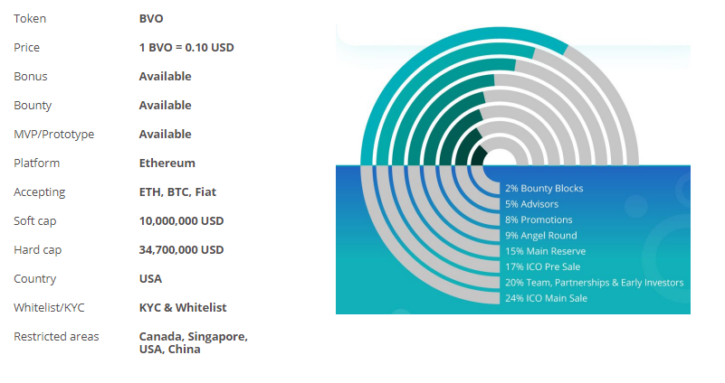 The Bravo tokens marked down amid the ICO are ERC20 tokens, BVO-ERC. After the ICO there will be a token swap where BVO-ERC tokens will be traded for BVO tokens, and afterward consumed. There will be an aggregate supply of 1 billion BVO tokens. The BVO token will be evaluated at $0.10 for people in general ICO deal.