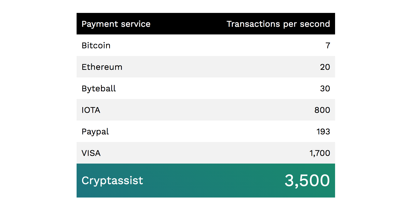 Technology of increased scalability. Provides 3,500 transactions per second. This is higher than all other payment systems, even VISA.