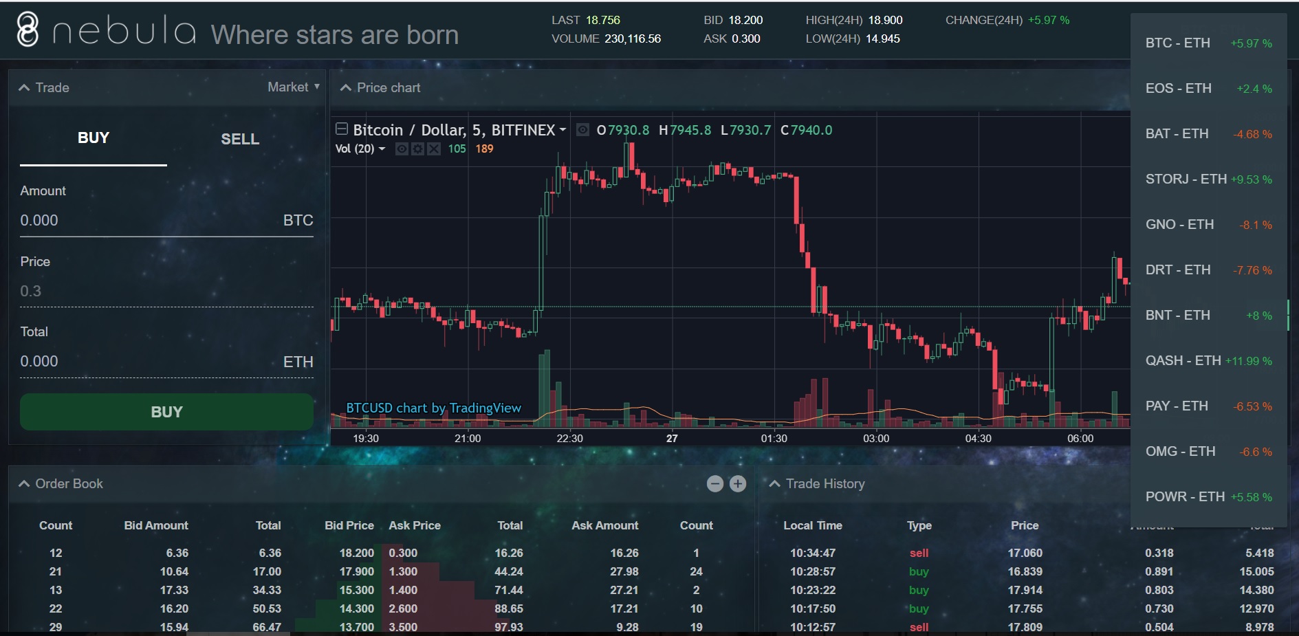 NEBULA is a one-of-a-kind centralized digital currency exchange platform. This modern exchange is a combination of different tools for the trader, namely: the latest news and technical analysis. In addition, the platform will be implemented decentralized peer-to-peer system. The essence of this system is very simple. It will allow each participant of the platform to participate in various votes, comment, leave feedback on cryptocurrencies, etc.for this, a feedback system was developed, as well as voices that will make up the rating of the project. The basis they took the feedback system, which successfully operates in Amazon.com. This approach will allow fraud prevention, and to monitor HYIP projects which will have the minimum rating. All these tools will help in the future not to make a mistake to the beginning investor and trader, as well as protect it from the loss of capital.